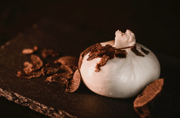 Same process of the burrata with truffle cream inside. Originating in the South of Italy.