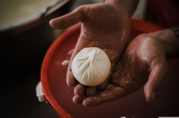 This delicate, shiny and rich cow milk. Stretched mozzarella curd is filled with ripped fresh cream. Originating in the South of Italy.