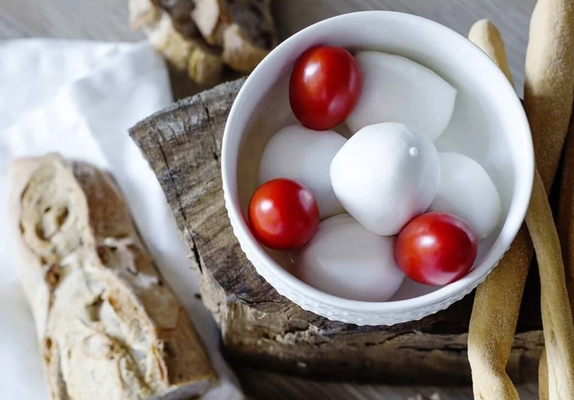 Small mozzarella cheese balls. Like Fior Di Latte, they are semi-soft, white, and unripened mild cheeses that originate in Naples.